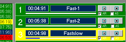 AR-Autorewind: Playback will start from the beginning of the file. AS-Autostop: Starting this deck will stop another. Multiple files can be played simultaneously depending on the number and modell of sound card used. Clicking on the trash button will clear all decks, one deck can be unloaded by dragging the file from the deck to the listbox. |